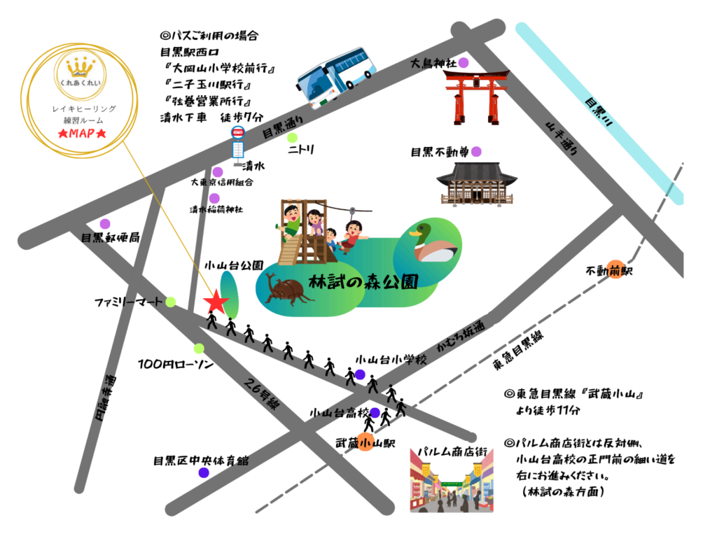 東急目黒線・三田線「武蔵小山」駅より徒歩11分。場所の詳細は予約いただいた方のみにメールでお知らせします。
